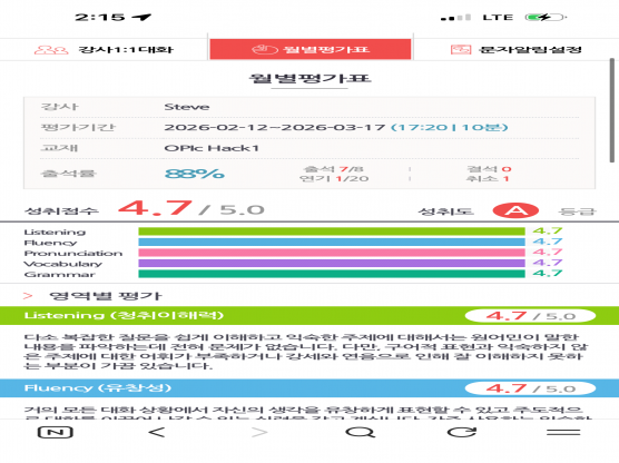 Mary 선생님과의 5달 수업, 첫 OPIc 시험 ...