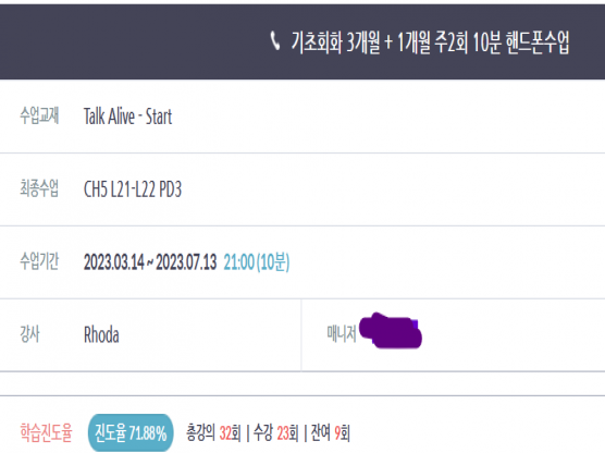 2021년도에 수강하다가 영어 전화 오는날이면 스트레스를 받고 잠시 수강 중단을 했었어요.그리고 2023년 신년계획으로 영어를 목표로 해서 다시 수강 신청을 했었죠.벌써 6개월이 지났...