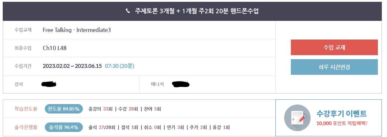 5월 한달간 이티폰과 함께한 후기입니다^^현재 시니어레벨4를 수업중인데 이번달에 수업하며 느낀것은 주제가 조금 어렵게 바뀌니 수업을 진행하면서 체감하는 난이도가 그 이상으로 확 올...