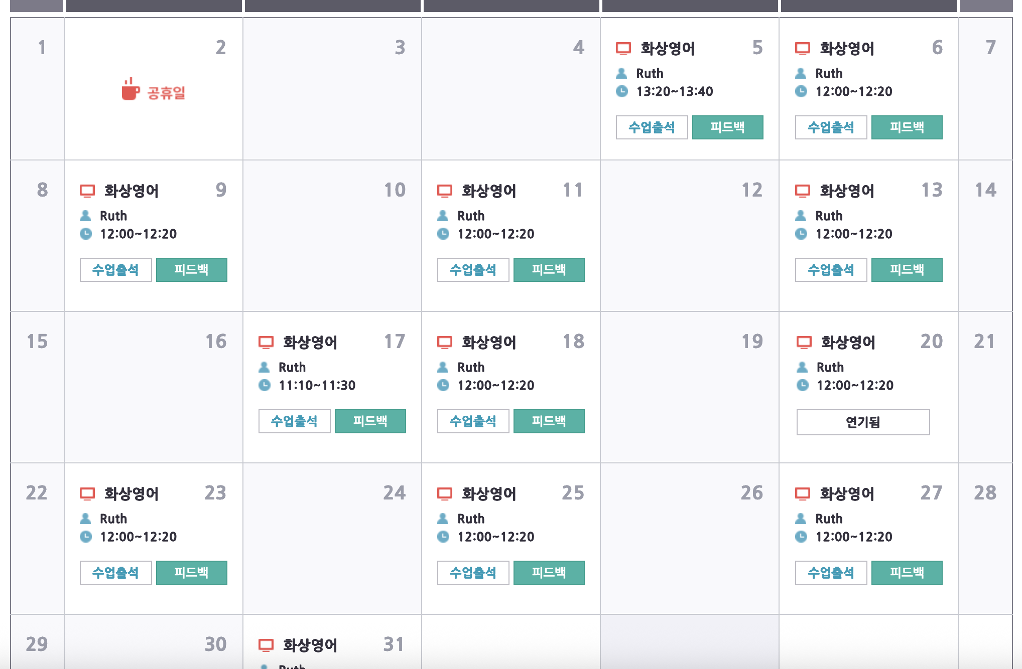 3월 한 달 동안 영어 화상 수업을 수강하면서 느낀 점은 기대 이상으로 만족스럽다는 것이었습니다. 4년 전 처음 화상 영어 수업을 할 떄는 화면을 통해 외국인 선생님과 직접 대화하는 것이...