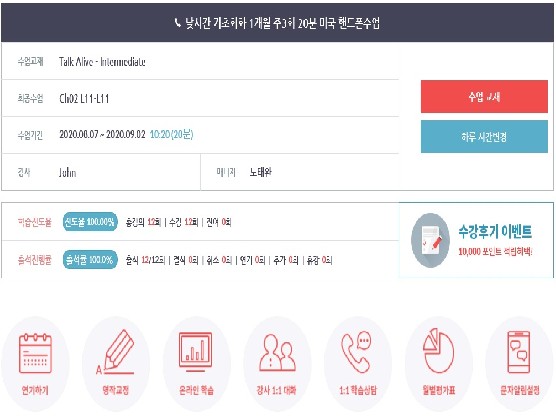 1년 하고도 4개월이 지난것 같습니다.중 1 남학생이고 그동안 미국인, 영국인 선생님하고만 했습니다. 휴대폰으로 받아서 하니까 가끔 이동중에도 하고, 은행 ATM 자동화기기 안으로 들...