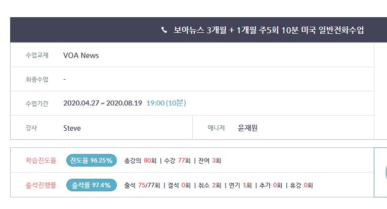 재등록한지 얼마 안 된 것 같은데 4개월이 금방 가네요~안녕하세요 2018년 3월부터 ET영어에서 공부하기 시작했고수강한지 벌써 2년 6개월 정도 되었습니다.지금은 VOA뉴스 코스로 공부하고 있...