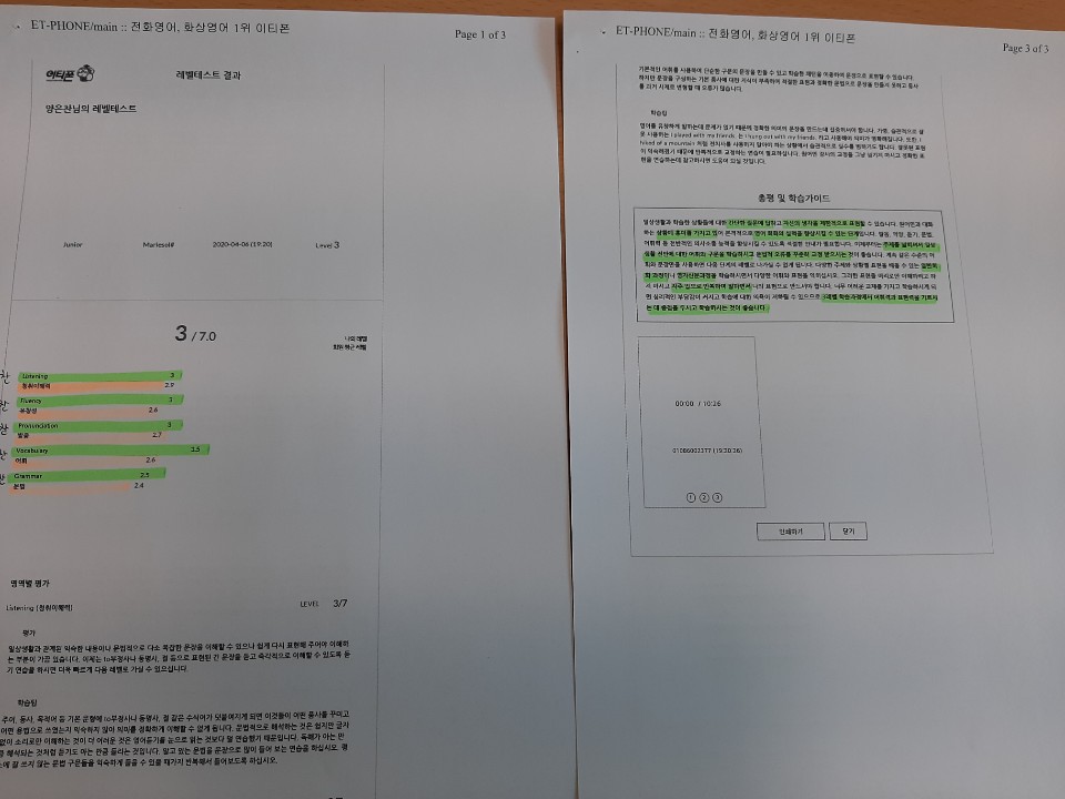 첫 전화영어 수업을 마치고 ( 학부모 후...