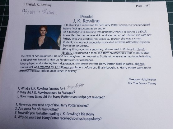 중학교 2학년 재학중인 딸아이가 수강하고 있는 이티폰 영자신문 틴/주니어타임즈에 대한 후기를 작성하고자합니다. 제 딸아이가 이티폰을 수강하게 된지는 약 3년이 넘은것 같네요.처음에는 ...