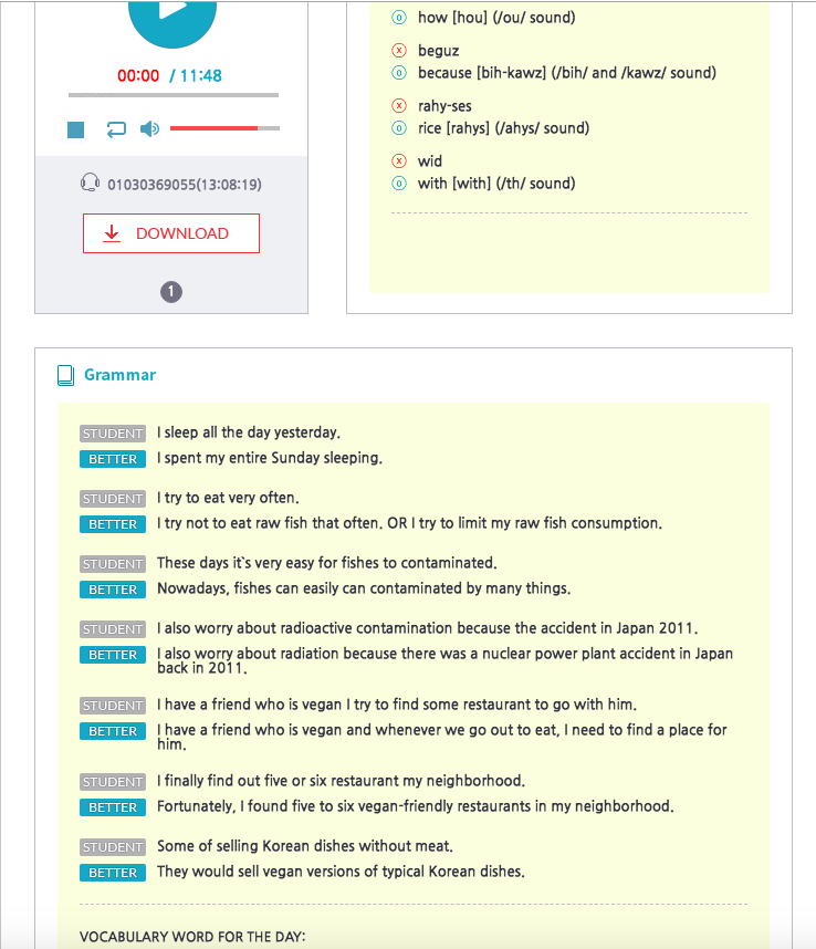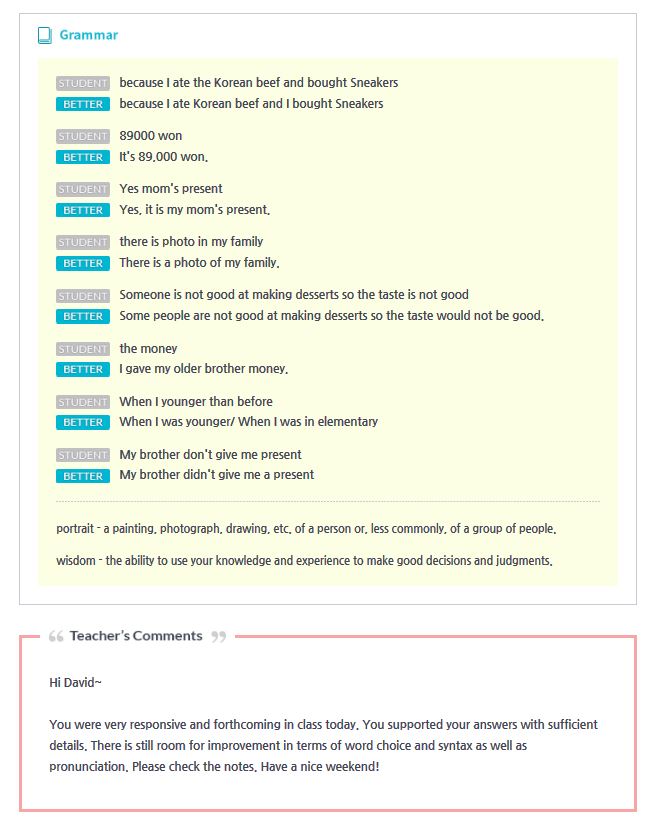 저는 전화 영어를 하고 있는 초등학교 6학년 남학생입니다.이티폰으로 공부한지는 아직 1년이 안되고요.요즘 학원에서 중학교 선행 수업을 하는데 영어 문법이 좀 더 어려워졌어요.하지...