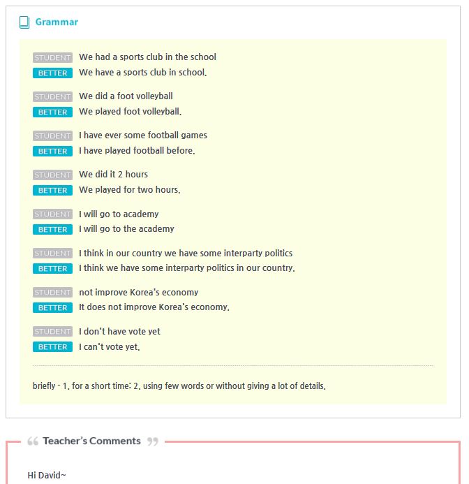 안녕하세요, 저는 10개월동안 이티폰 영어를 하고 있는 중학교 2학년 학생입니다. 지금 같이 수업을 같이하고 있는 엘리자베스 선생님과 함께한지는 2개월 정도가 지났는데 그동안 선생님께...
