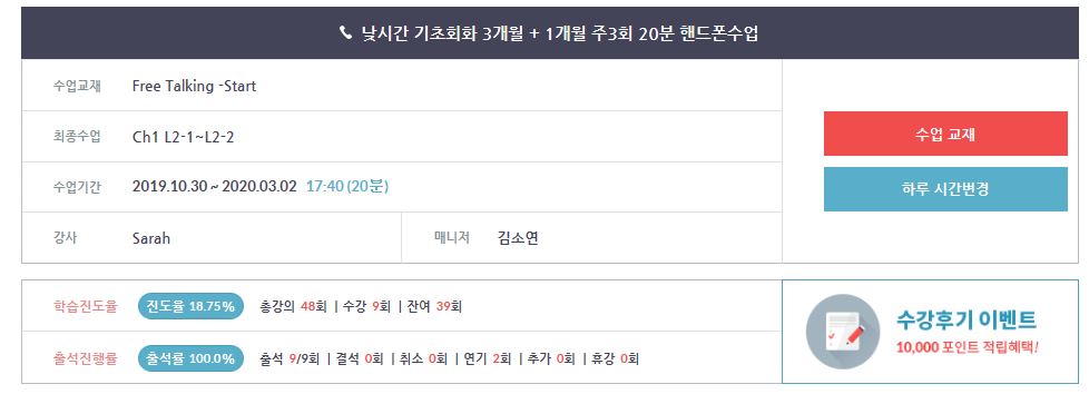 새로운 선생님과 진행한지 1개월정도가 흘러 이렇게 다시 후기를 작성합니다.현재 함께하는 사라쌤은 이전 쌤이 그만두신후로 다소간의 방황기를 지난후 마침내 다시 만난 너무 잘 맞는 선...