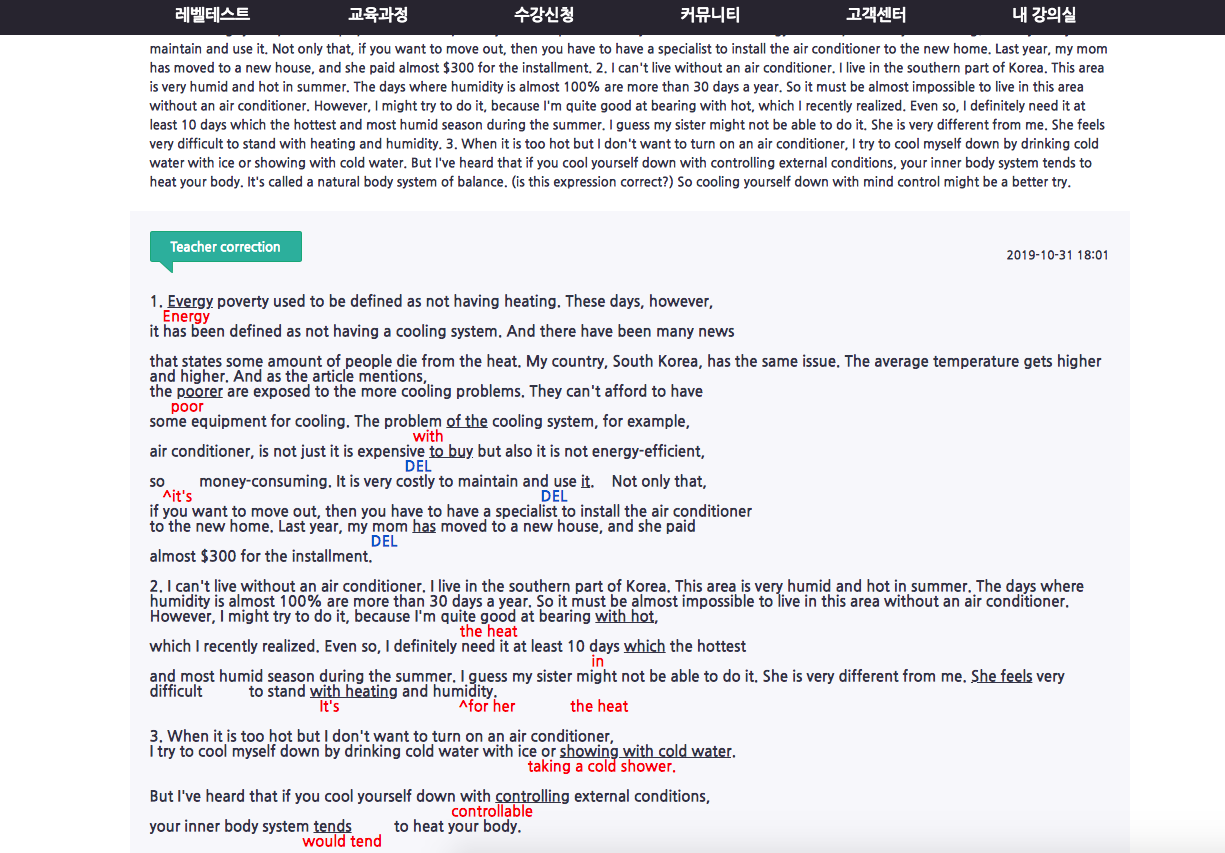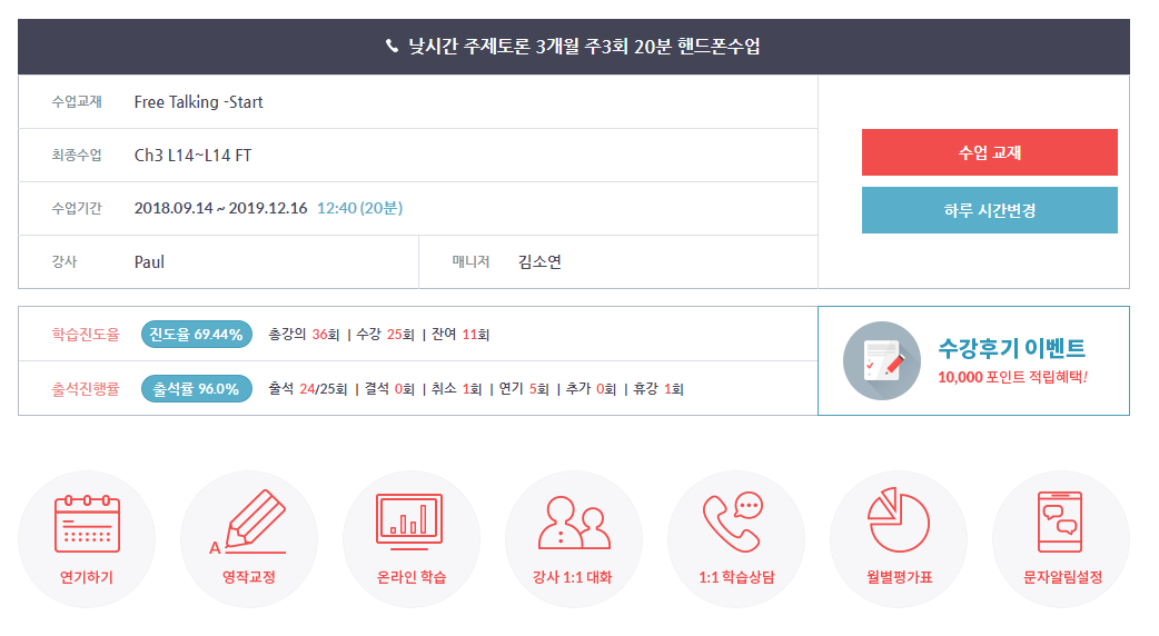1. 타사 업체에서 전화영어를 1년정도 하고 다른 업체를 찾던 중에 이곳을 선택하게 되었습니다. 저는 미국 선생님이랑 통화하는데, 잘못된 문장을 고쳐주고 새로운 표현 제시해주시곤 합니...