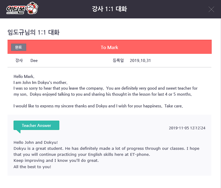 이티폰으로 만 5개월 수업하고 있는 초등 6학년을 둔 어린이 엄마입니다. 5년간 이티폰에서 근무한 베테랑 강사의 개인 사정으로 아쉽게도 새로운 강사님을 만나게 되었습니...