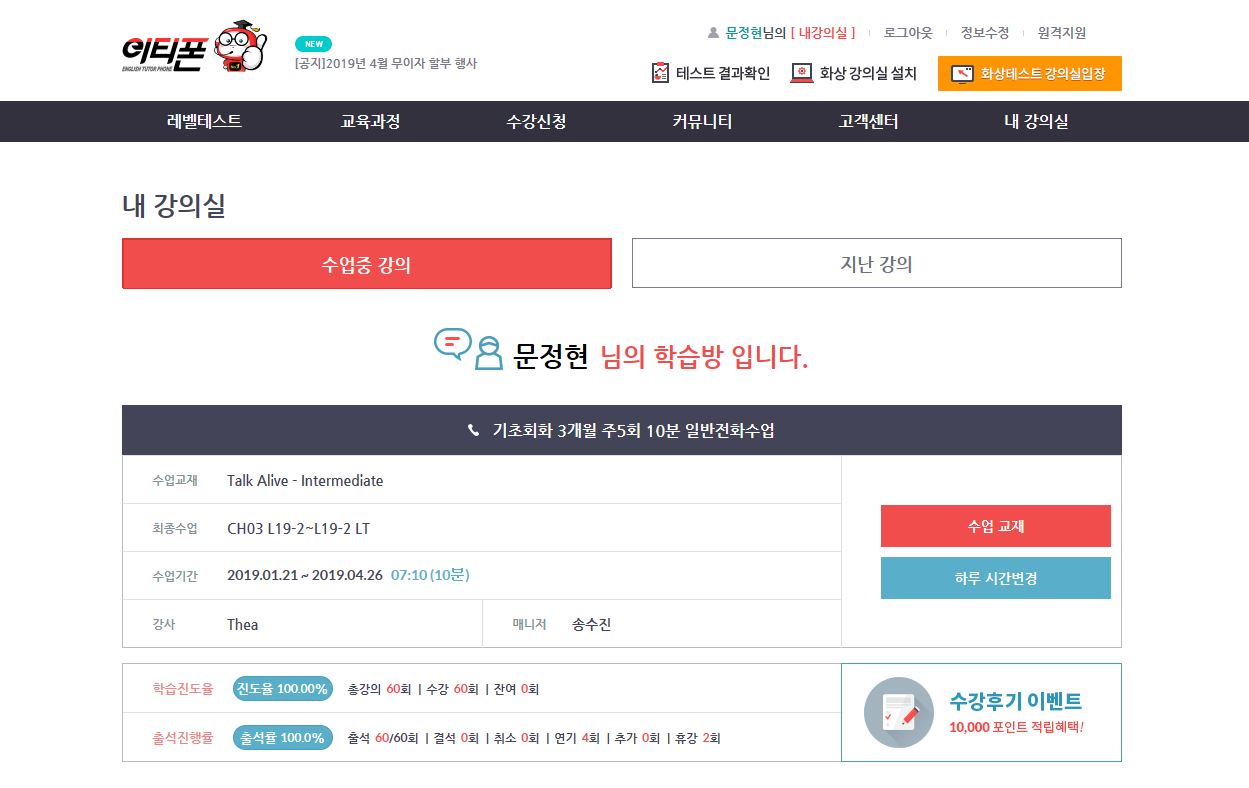 8개월 등록을 하고 한달정도 남겨놓았네요.시간이 참 빠르게 지나가요.수업을 할 때는 모르지만요.저는 이티폰으로 2015년부터 공부하고 있는데요중간에 공부를 쉰 기간도 있지만 나름 꾸준...