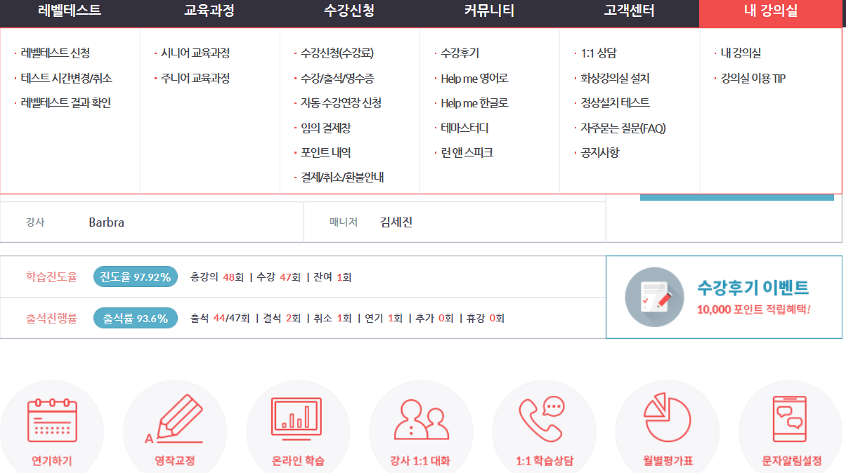 이제는 이티폰 영어와 함께한지 어언 1년이 넘어 2년을 향해 갑니다.처음엔 긴가민가하며 전화영어를 시작했었는데,지금은 왜 예전부터 시작하진 않았나 하는 후회가 듭니다.현재는 직...
