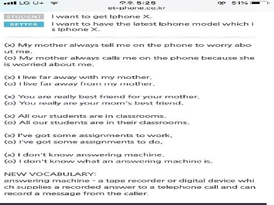 ET폰 수강전에 다른 전화 영어를 6개월간 수강했는데 다른 전화영어 수강시에는 항상 교재를 컴퓨터로 봐야 하는 문제점이 있었는데 ET폰은 모바일 혹은 컴퓨터로 접근성도 뛰어나서 언...