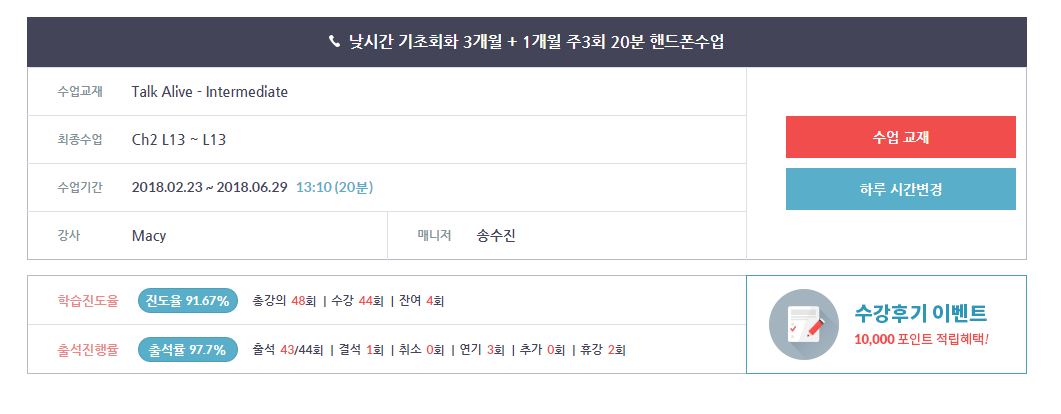 영어와 담을 쌓고 산지 10년이 지났는데 올해 시간 여유도 있어서 영어 공부 방법을 고민하다가 이티폰을 알게 되었습니다~타업체 화상강의와 꼼꼼히 비교해보니 이티폰만한 게 없더라구요~가격도...