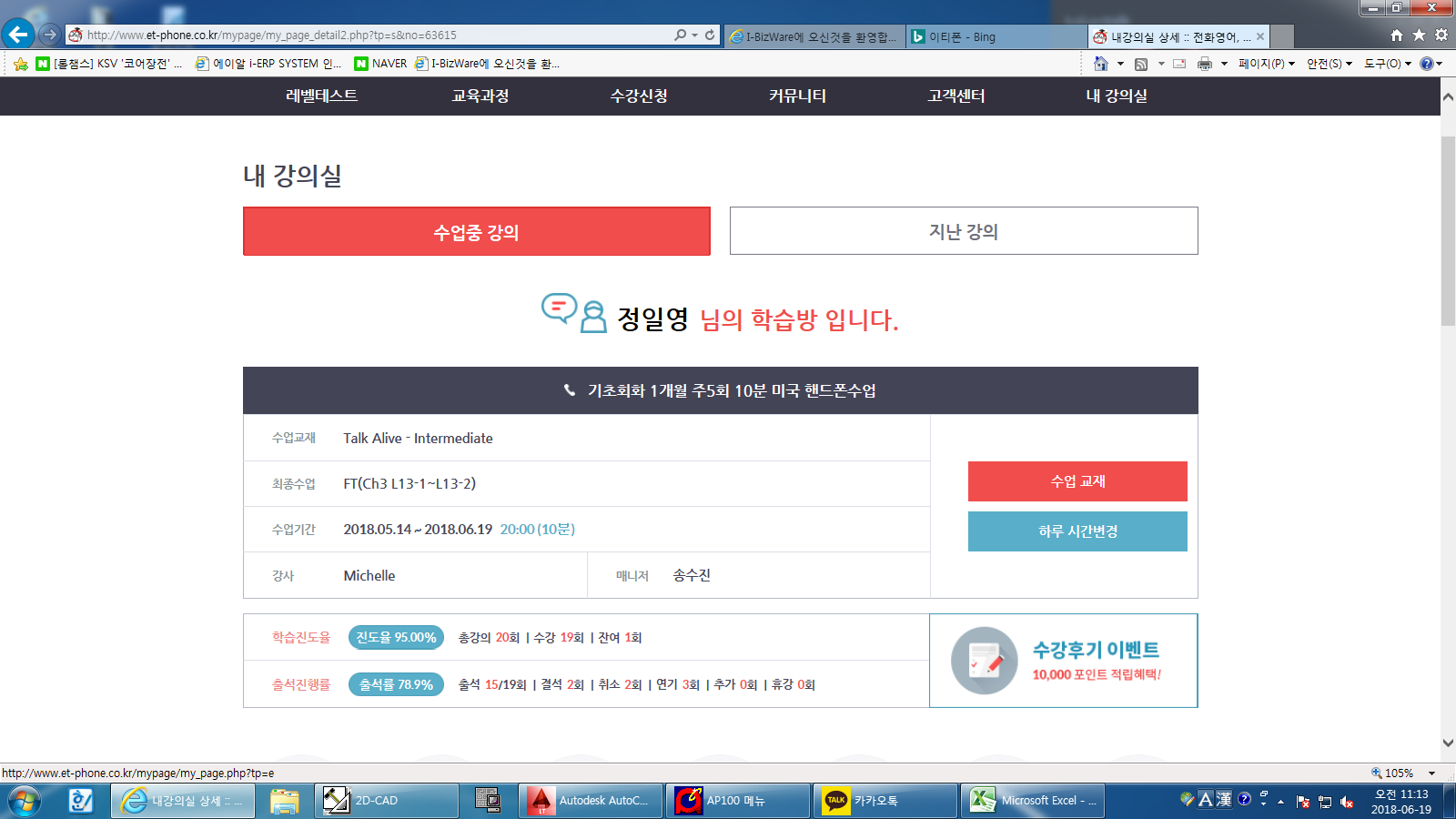 이제 조금 있으면 2달이 넘어가네요. 초반에는 반신반의 하면서 시작하게 되었지만, 지금은 어떻게 하면 나의 영어 실력을 향상 시킬수 있을까 하는 고민을 하면서 수업에 임하게 되는...