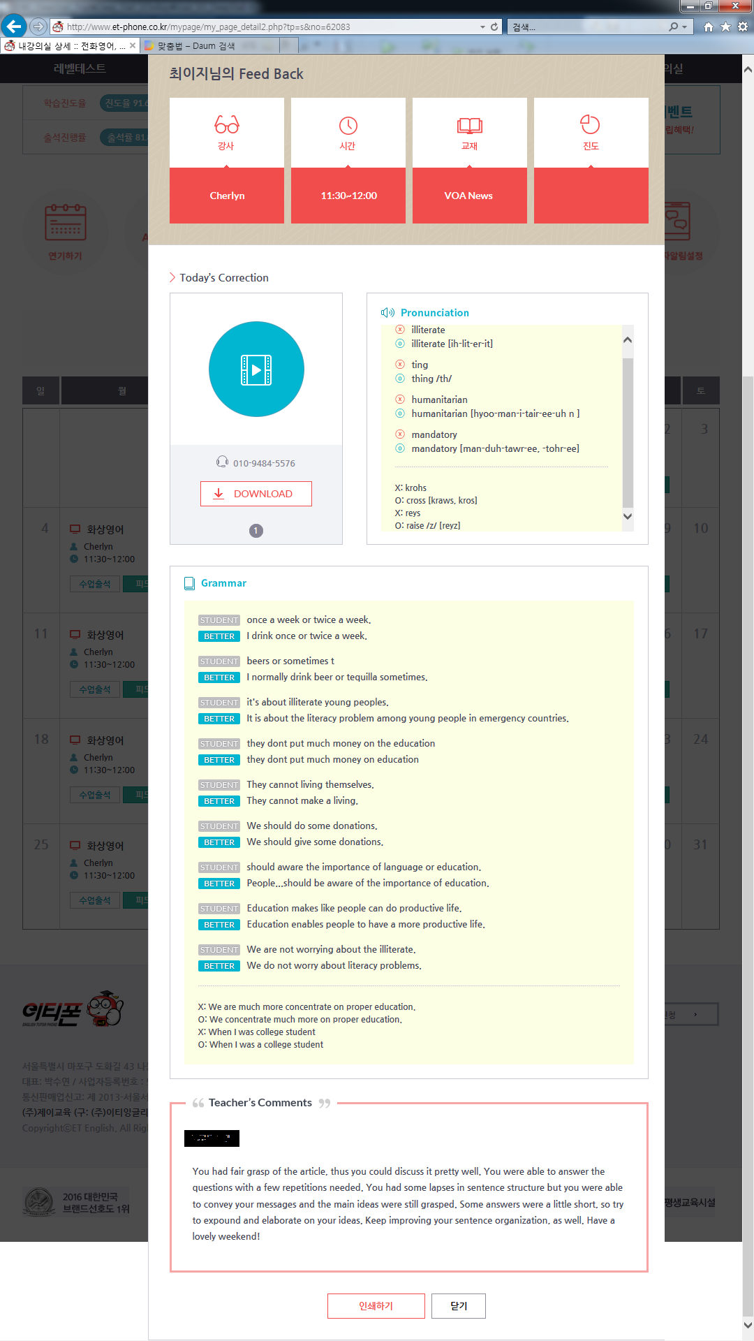 영어와 담을 쌓고 산지 10년이 지났는데 올해 시간 여유도 있어서 영어 공부 방법을 고민하다가 이티폰을 알게 되었습니다~타업체 화상강의와 꼼꼼히 비교해보니 이티폰만한 게 없더라구요~가격도...
