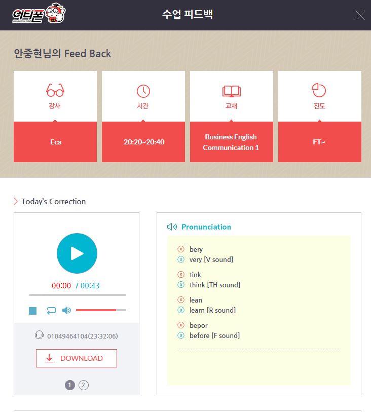 영어 공부 이제 이티폰으로!안녕하세요? 저는, 이제 4학년이 된 수강생입니다. 이제 수업을 5개월 정도 했는데 아직 영어를 잘 못해서, 잘하고 싶은 마음에 열심히 하고 있는 중이에요. 매일...