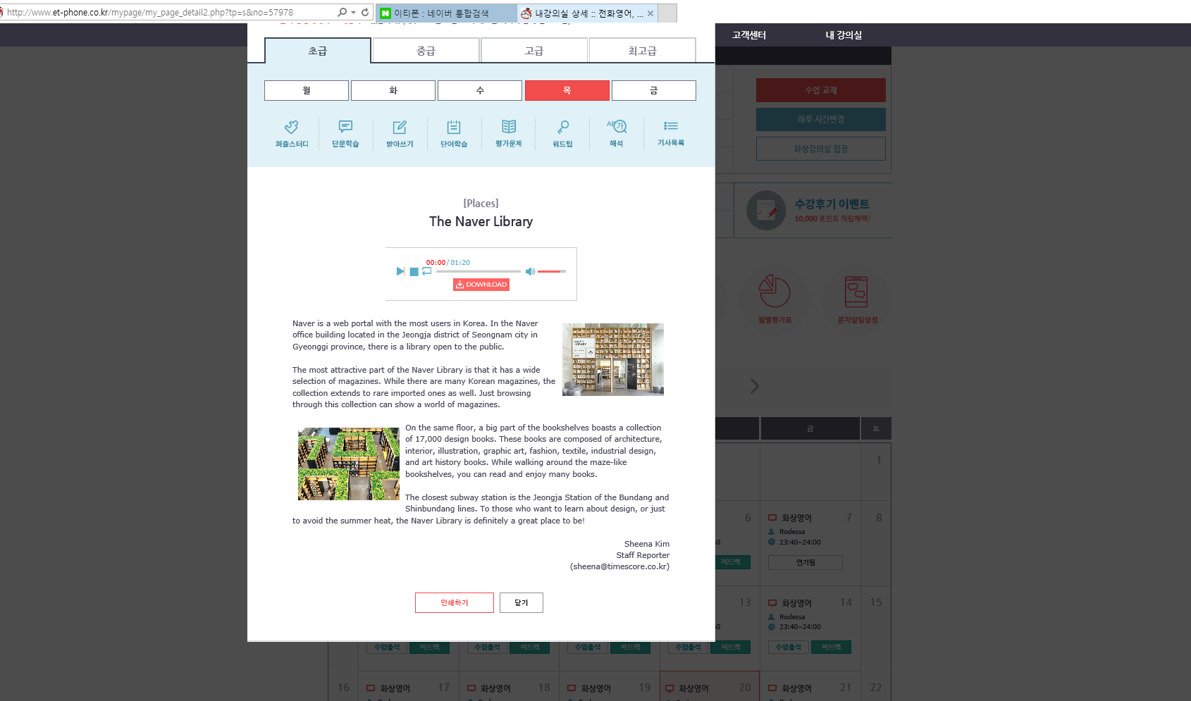 중학교 2학년 재학중인 딸아이가 수강하고 있는 이티폰 영자신문 틴/주니어타임즈에 대한 후기를 작성하고자합니다. 제 딸아이가 이티폰을 수강하게 된지는 약 3년이 넘은것 같네요.처음에는 ...