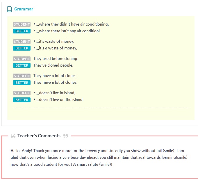 이제 원어민 선생님이랑 한지 4개월이 되었습니다. 탈도 많고 걱정도 많았지만 요즘에는 두려움이 많이 사라져가는 것 같아 기분이 좋습니다. 제가 어떠한 말을 해도 선생님은 다 알아듣고 ...