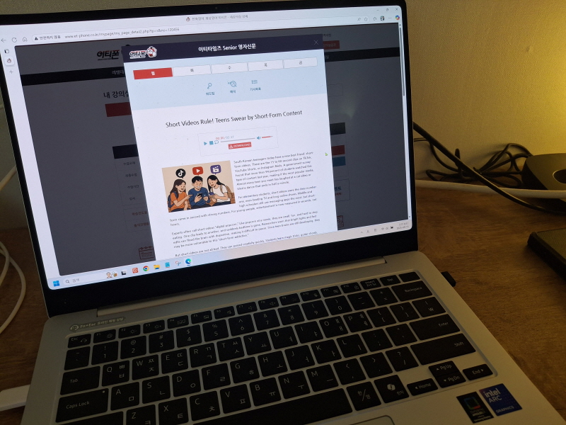 중학교 2학년 재학중인 딸아이가 수강하고 있는 이티폰 영자신문 틴/주니어타임즈에 대한 후기를 작성하고자합니다. 제 딸아이가 이티폰을 수강하게 된지는 약 3년이 넘은것 같네요.처음에는 ...