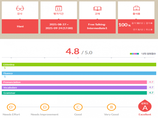 10월도 벌써 3주가 지났네요. 지난 한 달간의 학습을 되돌아보았습니다. 9월에는 발음과 문장 리듬에 집중했다면, 이번 달에는 표현의 자연스러움과 응용력 향상에 초점을 맞췄습니다....