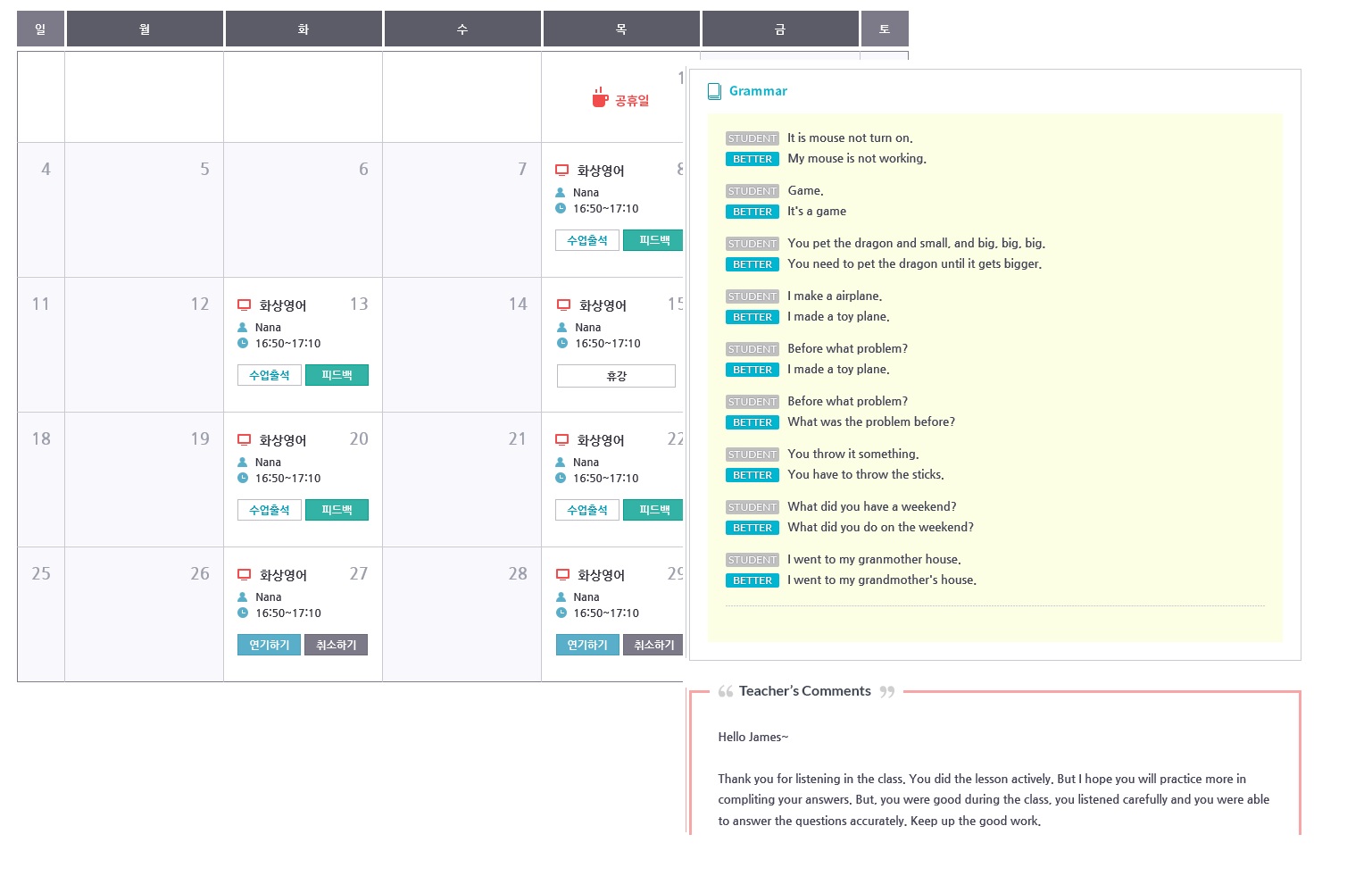 여전히 담당 선생님과 아이는 서로 교감을하면서 영어가 학습이 아닌 편하게 다가설수 있는 대단히 자연스러운 언어가 되어버려 그점이 가장 만족스럽습니다..