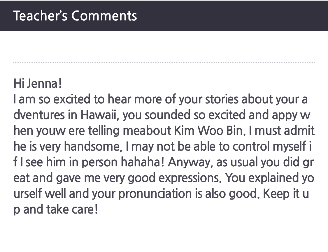 타사 전화영어를 한 적이 있었는데 책임감 가지고 열심히 챙겨준다는 느낌을 못받아서 옮겼거든요.