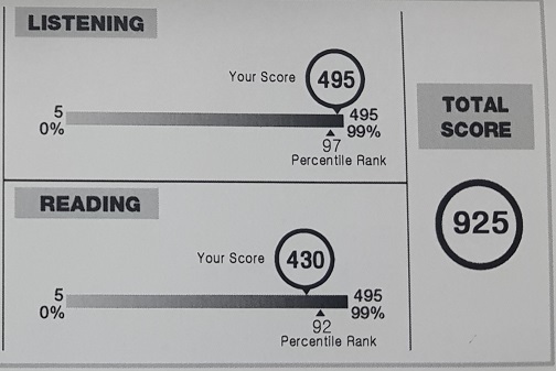 원어민 선생님의 발음을 매일 매일 10분씩 들으며 공부해서인지 LC파트에서 처음으로 495 만점을 받게 되었습니다