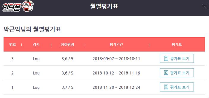 부끄럽지만 제 월말 성적표입니다. ^^;; 생각보다 성적이 좋네여 ㅎ