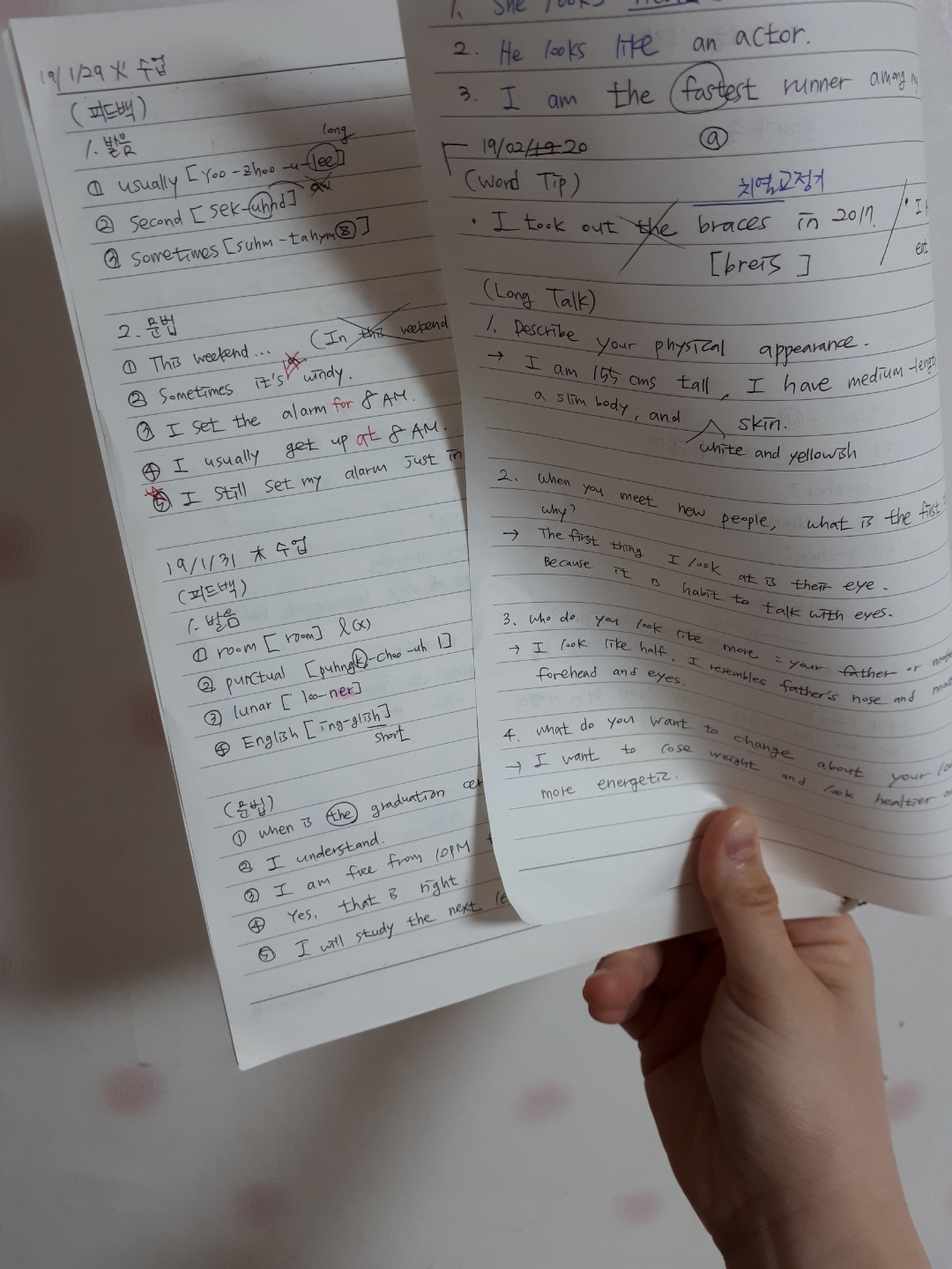 처음엔 피드백받는 발음, 단어, 문법도 다 노트로 적다가 노트가 혹시 사라지면 못 볼 거 같아서 피드백은 인터넷 타이핑으로 정리하고 있습니다.