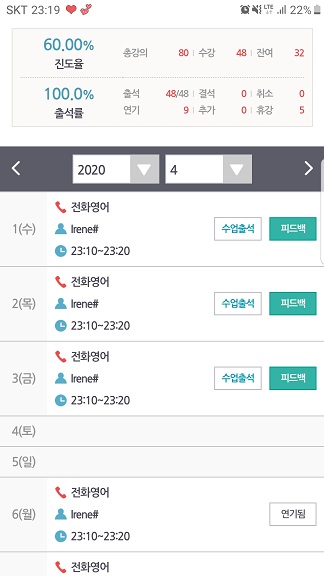 처음 레벨테스트를 하고 선생님과 통화하는 순간 하고싶은 말이 많지만 제대로 나오지 않아 어찌나 답답하던지, 이정도도 안되나 싶은 마음에 울컥하기도 하고 좌절스럽기도 했습니다. 그래도 매일매일 두려움에 떨면서 전화를 받다보니 이제 그 무서움도 적응이 되고 점차 제가 하고 싶은 말을 할수있게 되었습니다.