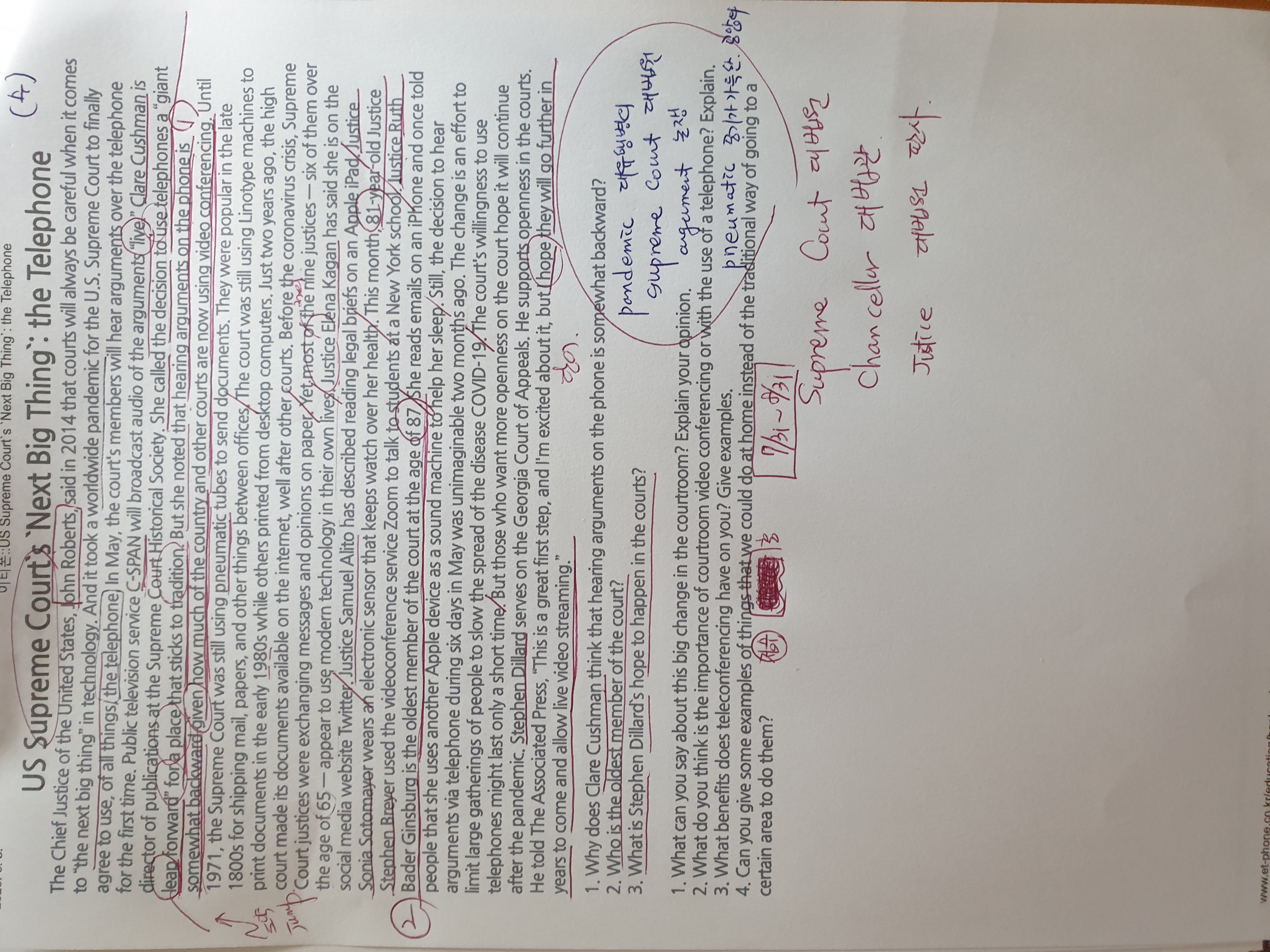 이티폰에서 영어기사 공부를 한지 꽤 오래되었습니다. 매일 하나씩 아침마다 영어기사 읽는 것이 제 인생에 많은 도움이 된다는 것을 여러가지 측면에서 정리해보겠습니다. 첫째. 매일 영어기사를 통해 정확한 문법과 새로운 단어를 익힐 수 있습니다. 둘째. 시사. 경제. 정치. 문화. It 등 전 세계의 시사뉴스를 다양한 측면에서 바라보는 시각을 가지게 됩니다. 세째. 기사를 가지고 선생님과 대화하다보면서 서로 다른 나라 사람들의 생각의 차이와 관점의 차이를 경험합니다. 시야가 넓어지고ㅜ저의 관점도확장됨을 느낌니다. 네째. 영어공부가 하기 싫은날도 있을텐데..그럴때마다 기사 내용이 궁금해서 저절로 영어공부를 시작하게됩니다. 오늘은 무슨기사내용일까? 하는 호기심이 매일발동합니다. 다섯째. 매일 기사에 딸린 단어팁을 보면서 하루에 3ㅡ5개씩 단어를 공부하게 됩니다 가랑비에 온젖듯이 조금씩 쌓여서 큰 성과가 납니다. 처음에는 단어실력이 낮았는데 지금은 단어구사력이 아주 좋아졌습니다. 또 쓰려면 다양한 장점을 쓸 수 있겠지만 오늘은 5가지만 적어보겠습니다 제가 첨부한 사진은 오늘 아침 공부한 자료입니다. 매일 1장씩 프린트해서 오디오들으며 문장을 익히고. 새로나온 단어도 기록해놓습니다. 기사내용에 대한 질문도 미리 나와있어서 잘 파악하지 못했던 내용도 다시 되돌아보게 합니다. 저는 누군가 영어공부를 한다고하면 VOA뉴스회화를 적극 활용하라고 권장하고 싶습니다. 내용도 재밌고. 시사상식도 늘어가는 아주 효율적인 학습법입니다.