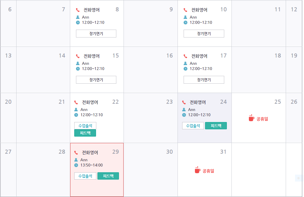 초반에는 전화가 올때마다 항상 떨리고 긴장되었는데 지금은 강사님과 일상 이야기를 편안하게 할 정도로 재미있어졌습니다.