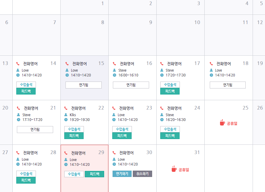 수업을 처음 들을 때가 어제같은데 벌써 3달이 되서 시간이 엄청빠른거 같아요ㅜㅜ 진짜 하루하루 선생님 전화를 기다리면서 빨리 영어를 하고싶다니까요!