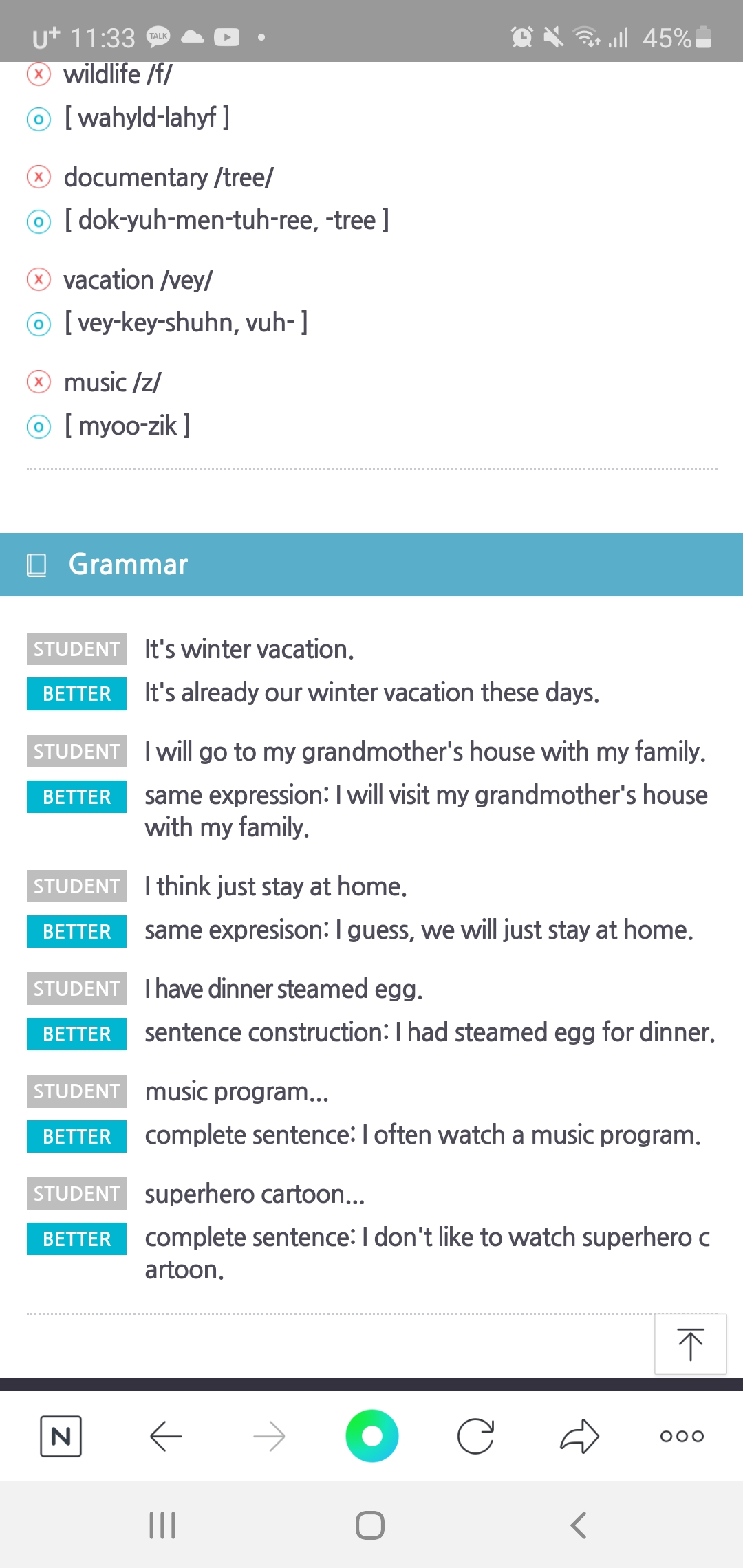 회원님, 안녕하세요! Jessy 강사님과 수업 잘 듣고 계시고 수업 중에 혹시 불편하시거나 문의사항은 없으신가요? 이제 중학생이 되셨는데 코로나 때문에 정상적으로 잘 준비가 되고 있는지 걱정이 되네요. 학교를 안가고 있지만 저희와 수업을 통해서라도 꾸준하게 말을 하는 연습을 해주시면 많은 도움이 되리라 믿습니다. 앞으로도 지금과 같이 빠짐없이 수업해주시고 건강 잘 챙기시고 중학교 잘 준비하시길 바랍니다. 새해 복 많이 받으세요 :)