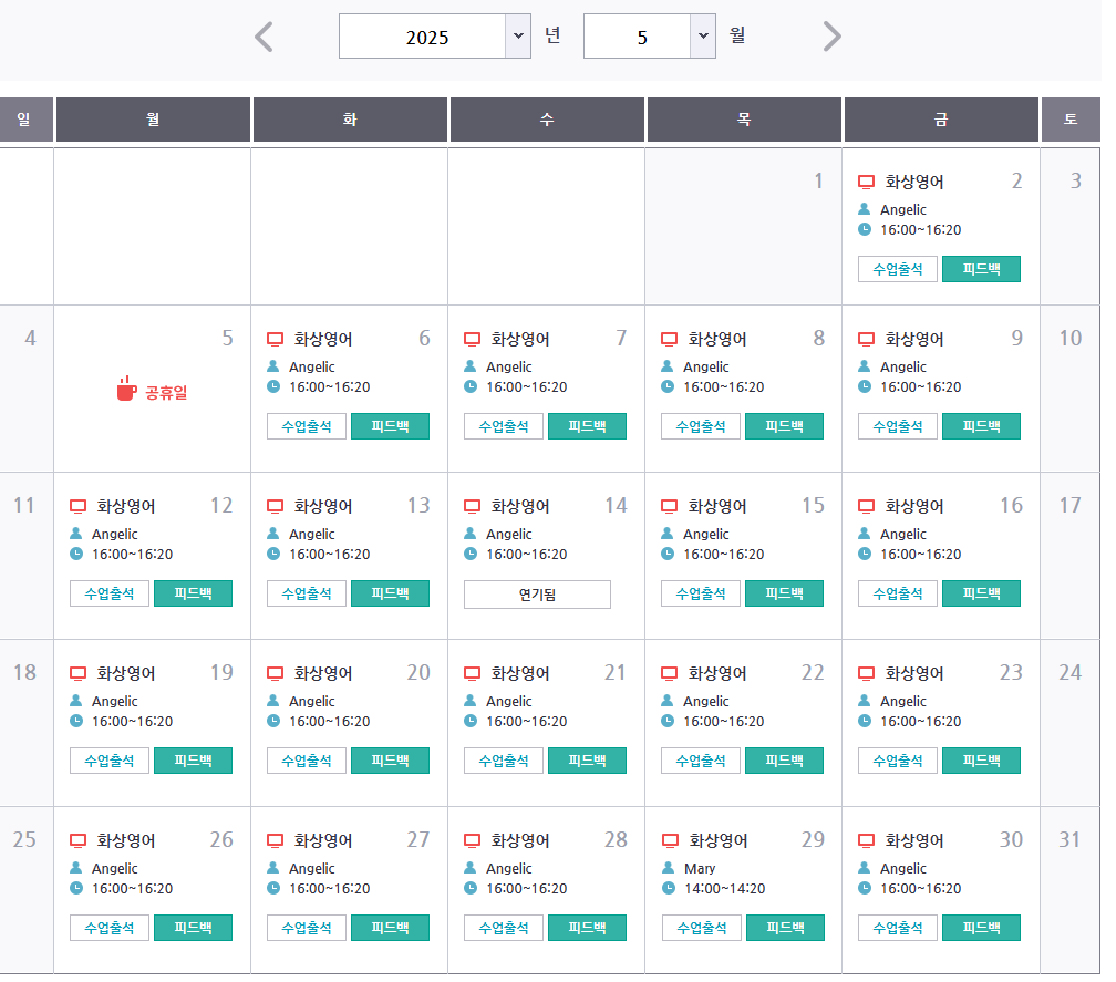 3개월 연속 수강중인 이티폰 너무 만족 하며 이용하고 있으며, 영어의 자신감이 없던 나에게 자신감을 채워준 Angelic 선생님께 너무 감사하며, 친철하게 하나부터 열까지 모르는 단어를 알수 있도록 도와주시면서 열정적인 수업을 하셔서 너무 좋습니다. 영어 뿐만 아니라 다른나라 언어도 관심이 많으셔서 다른나라 언어도 조금은 하실줄 아시며 영어로 된 질문을 많이 던져 주시면서 계속 꾸준하게 영어로 말을 할 수 있도로 도와주십니다. 3개월 동안 수강하면서 너무 만족하며 시간이 안맞아 다른 선생님이랑 수강할때면 제 담당 선생님이 너무 좋은 분이란 걸 다시 한번 깨닫게 되는 것 같습니다. 정말 열정적이시며 제 얘기도 많이 들어주시고 곧 해외로 취업을 하게 되는데 영어의 자신감이 붙어서 더 열심히 노력해 프리토킹이 가능한 레벨 까지 도전하고 싶습니다. 다른 분들한테도 이 수업을 들으라고 추천해주고 싶으며, 여러분들도 제 후기를 보신다면 angelic 선생님의 수업이 정말 좋아서 추천드리고 싶습니다. 6월달이 마지막 수강이 될거 같아 너무 아쉽지만 다시 시간적 여유가 생기면 다시 한번 수강하고 싶습니다.
