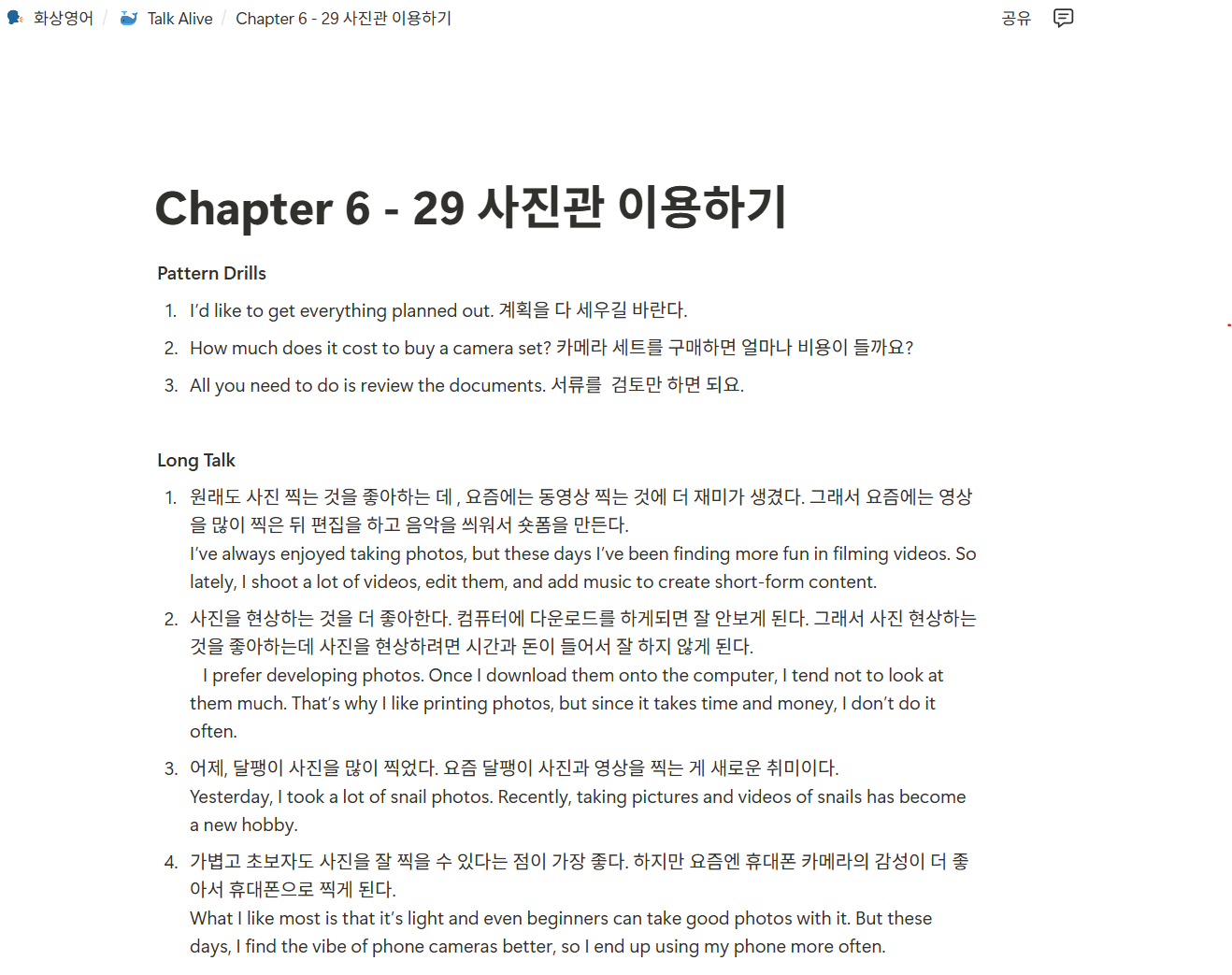 ↓ 수업교재 예습도 해두고, 어려울 땐 번역기도 사용해가면서 어느정도 제가 할 말들을 대략적으로 정리해두니 좋았어요!