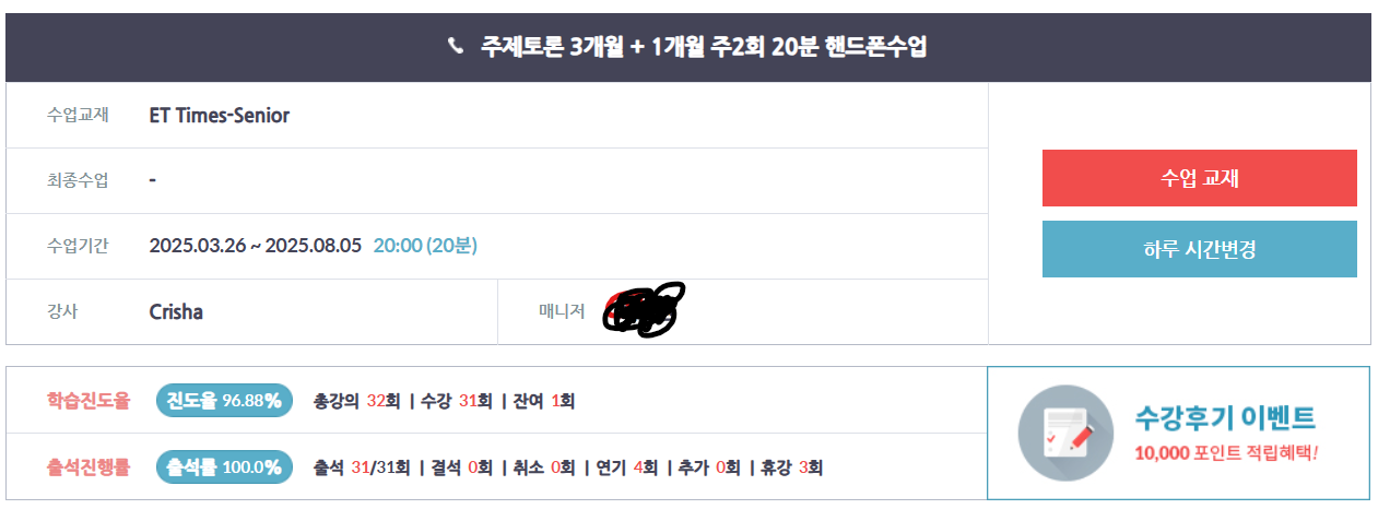 한달동안도 이티폰과 함께하며 영어수업을 놓치않으려 노력한 한달이었습니다.
