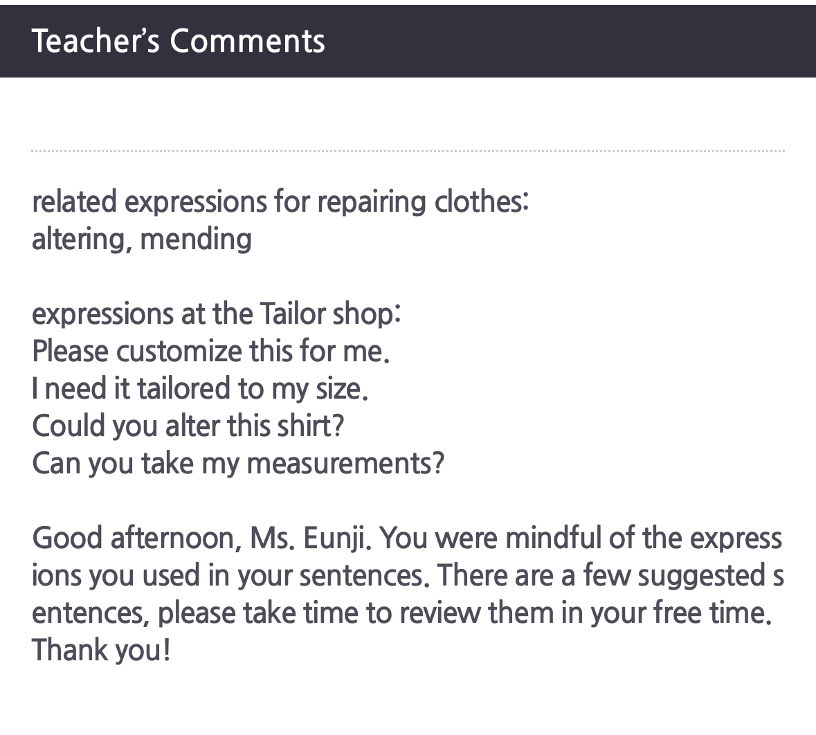 영작 교정도 티처가 따로 있어 더 꼼꼼하답니다.