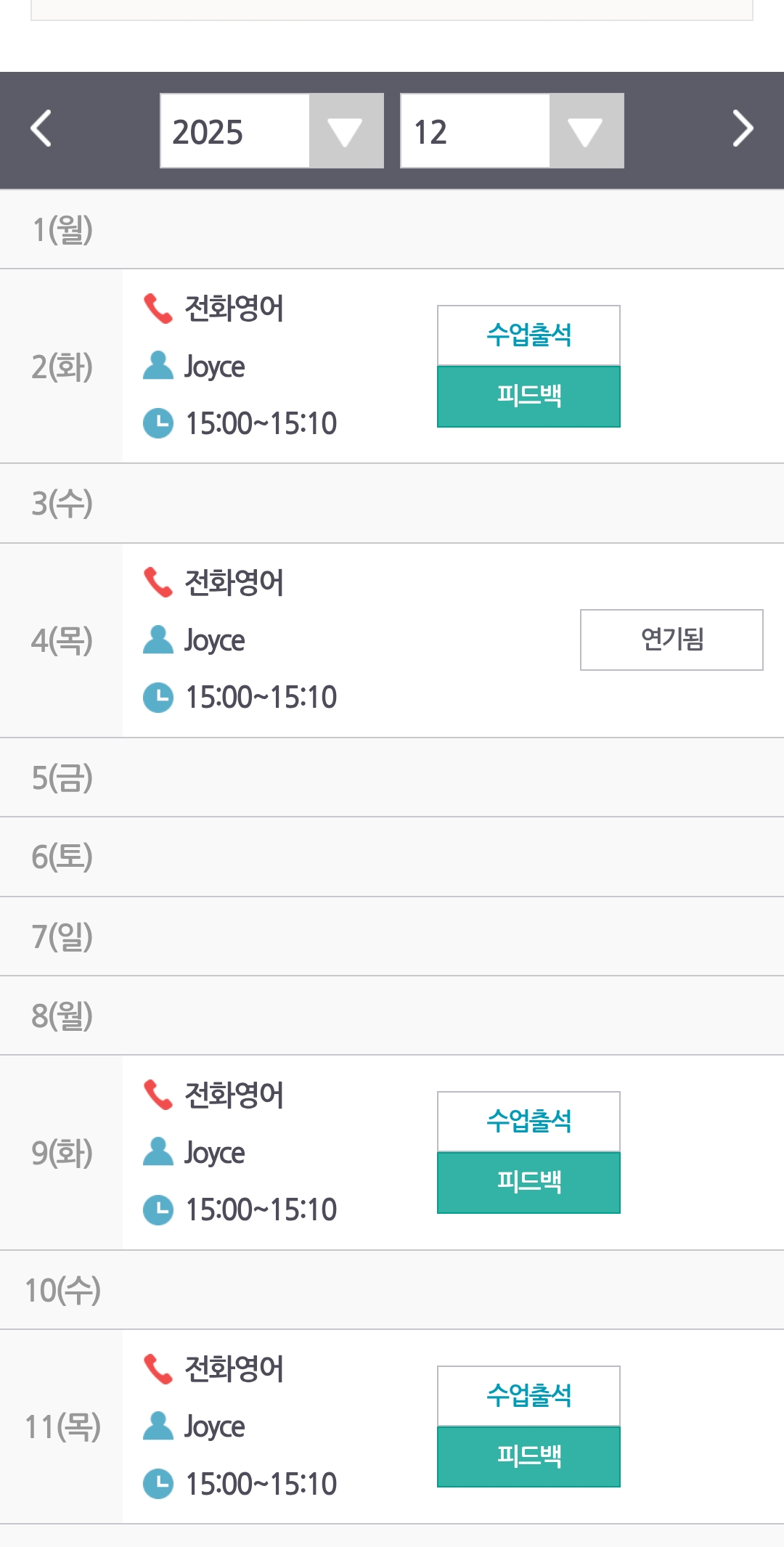 10분 수업 내용이 녹음된 파일도 바로 확인할수 있어요