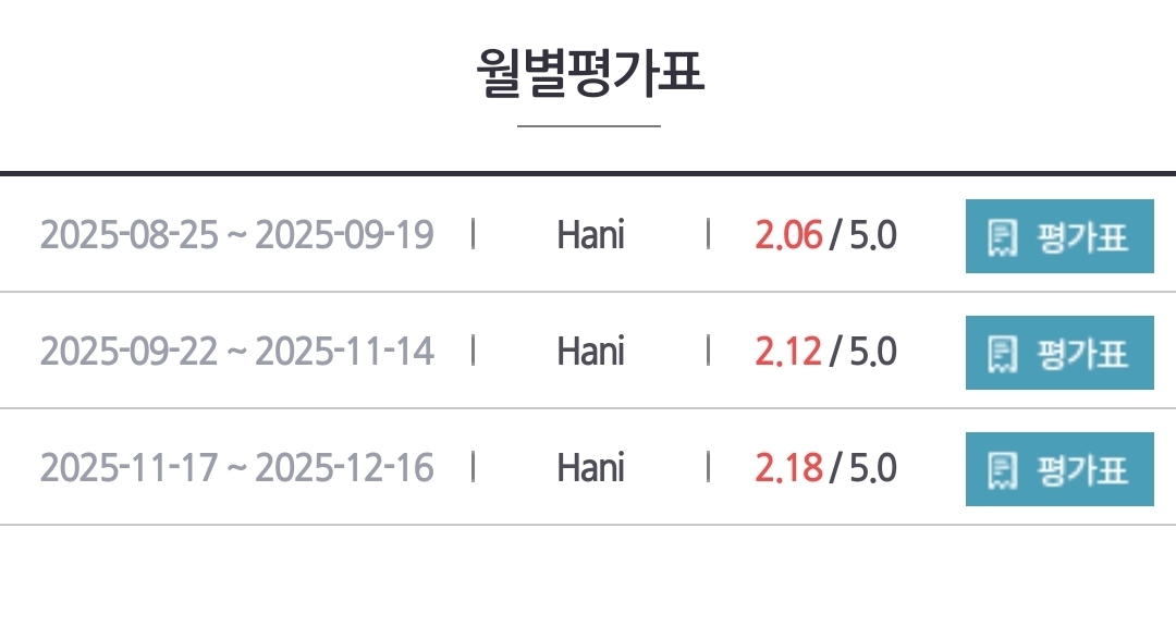 특히 수강생 저희 세명 중 월말평가 점수가 계속 상승하고 있는건 저희 둘째 밖에 없답니다^^