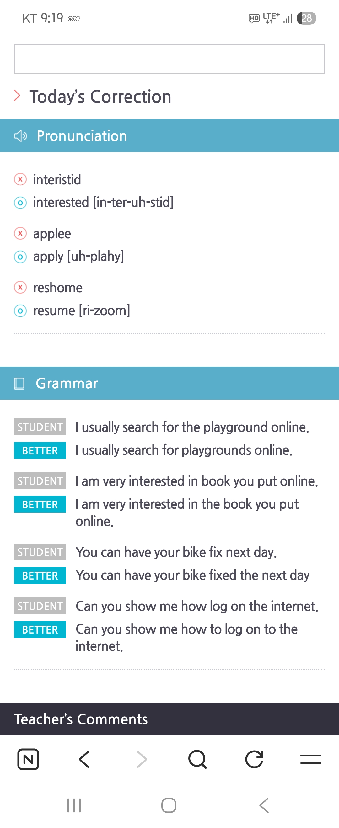 안녕하세요 회원님^^ 강사님과의 수업을 통해 조금씩 영어실력이 늘어가시다니 저희도 기쁘네요! 해외여행이나 일상 생활에서도 자연스럽게 영어 구사하게 되시길 함께 응원하겠습니다. 앞으로도 강사님과 즐겁고 유익한 수업 잘 진행해주세요! 감사합니다♡