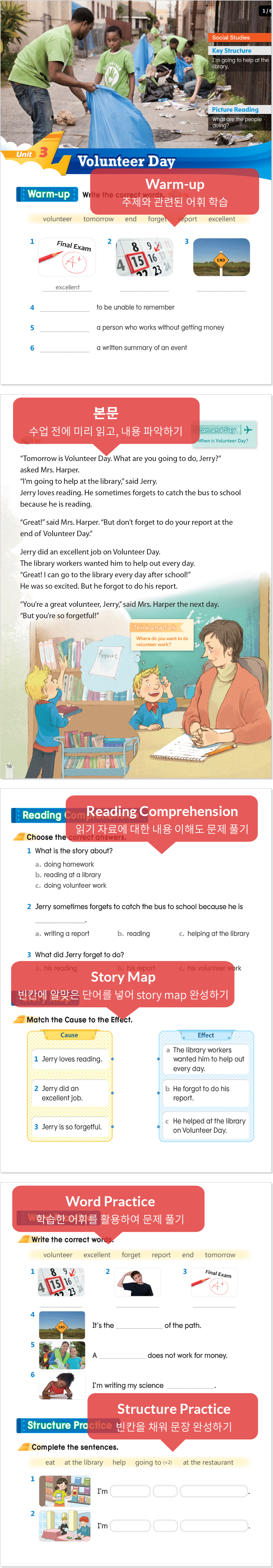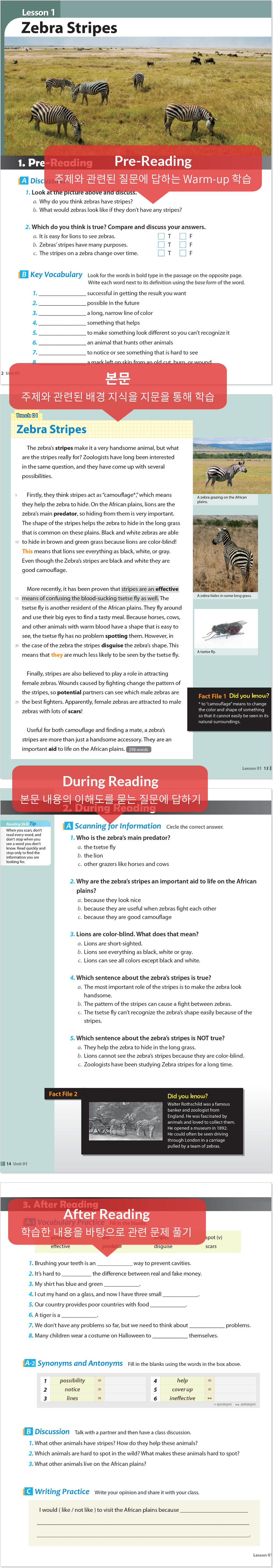 독해과정은 독해실력과 실생활에 필요한 회화 실력을 동시에 향상시킬 수 있도록 다양한 주제에 대한 배경지식을 쌓고 어휘, 관용표현, 문법을 학습하는 기초회화 교재입니다.